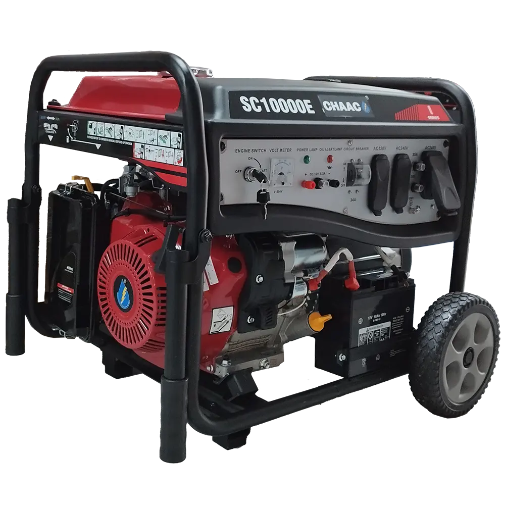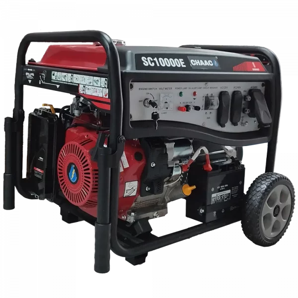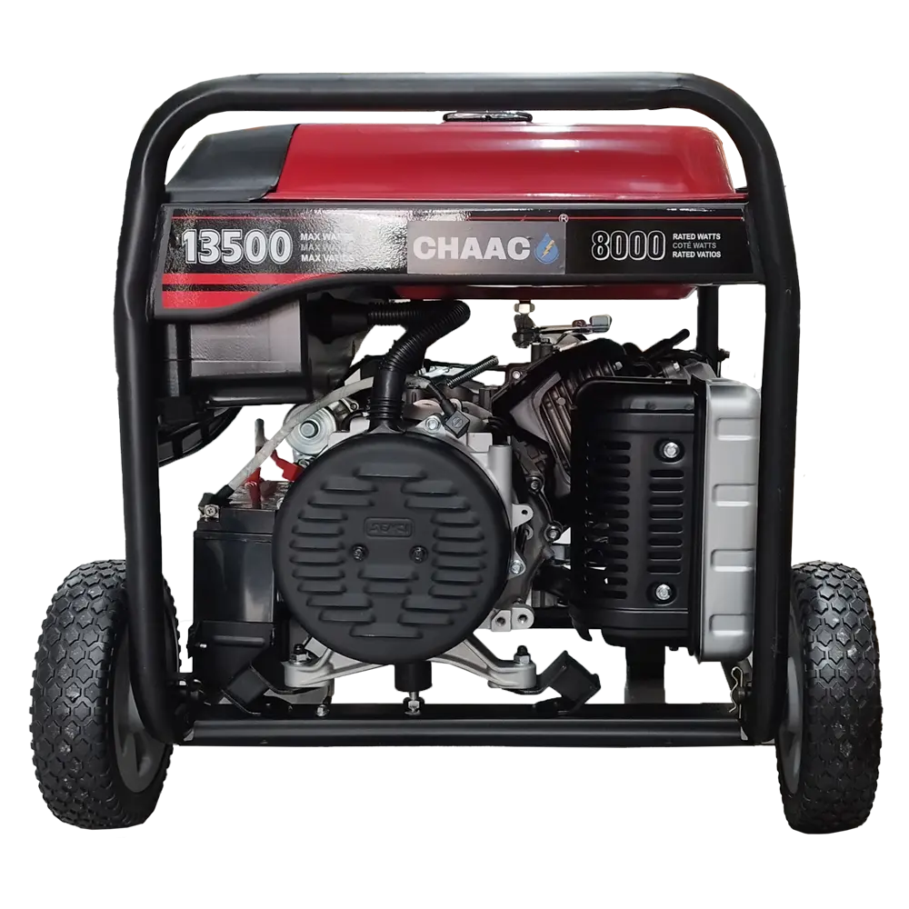 Generador portátil, cuenta con ruedas para facilitar su transporte, tablero para clavija americana, incluye clavijas.